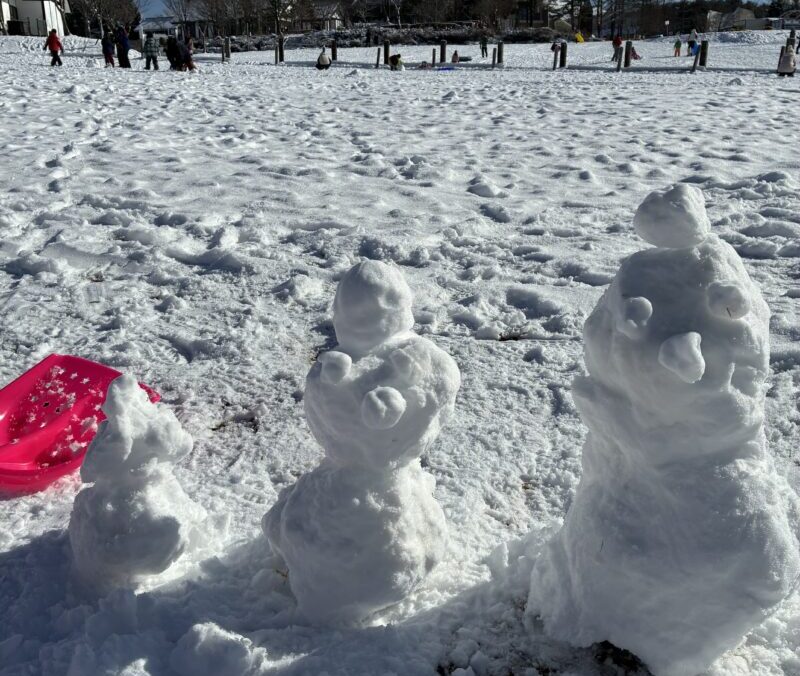 ソリも持っていきましたが、最初は雪だるまエリアに行き、雪だるまを作りました。