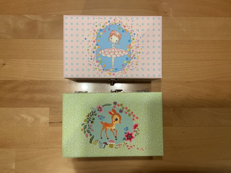 長女は今バレリーナが好きなので、バレリーナが描かれているボックスにし、次女は可愛い動物が好きなのでバンビが描かれいているボックスにしました。